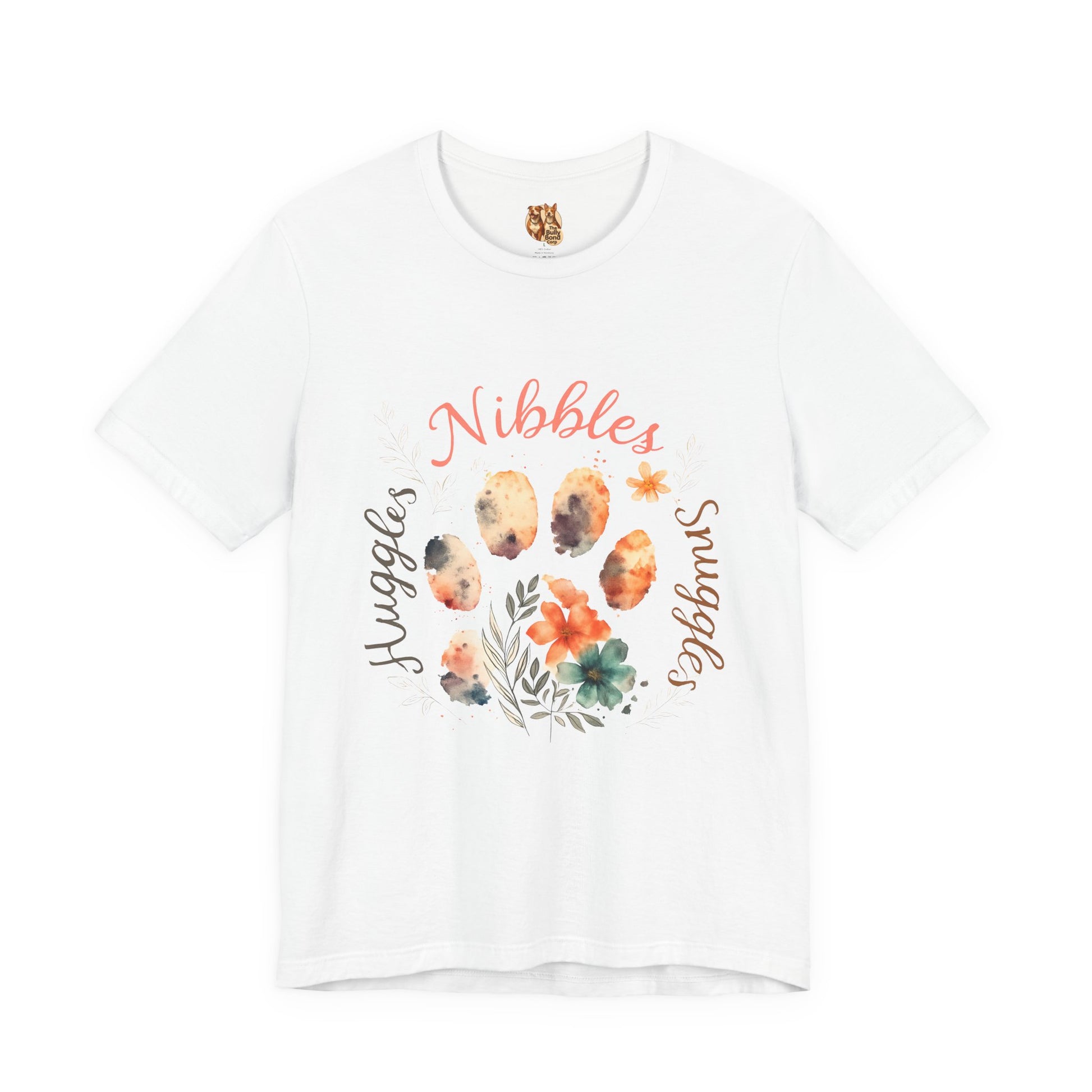 Huggles Nibbles Snuggles Watercolor Pawprint Floral Ladies Tee – Artistic Pet Mom Gift
