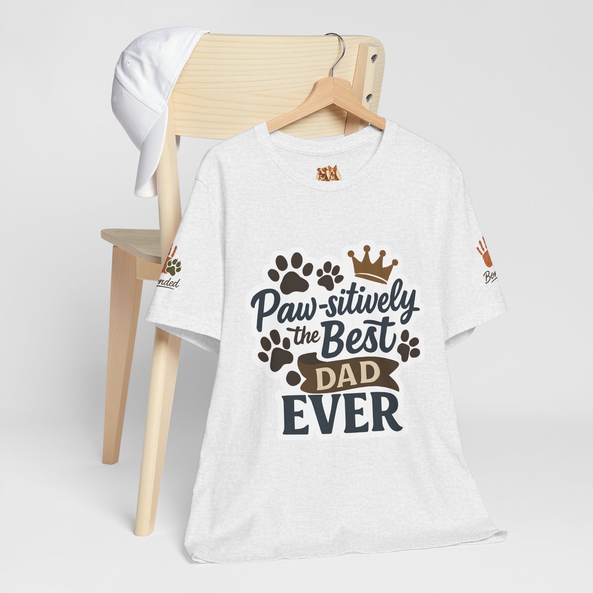 🐾 Front Design: “Paw-sitively the Best Dad Ever” – bold typography with paw prints and a crown, perfect for every proud dog dad.
