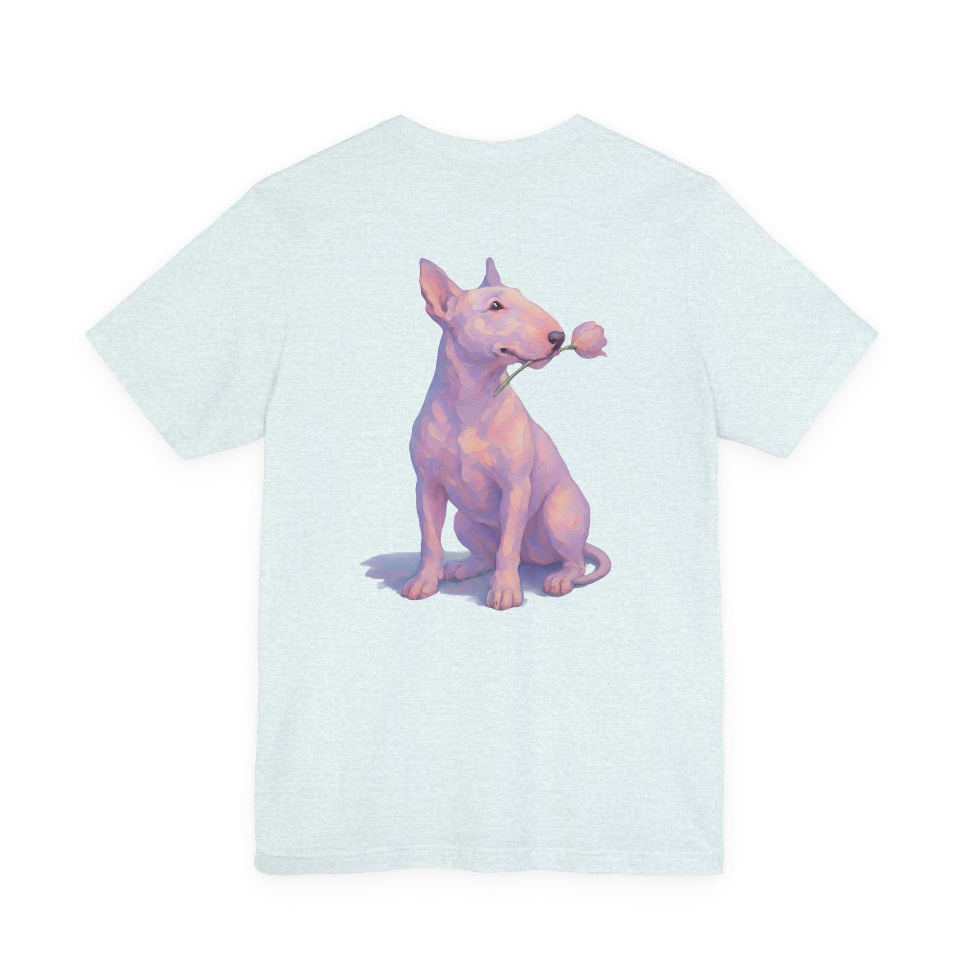 This premium tee features a full-body pastel oil-style illustration of a Bull Terrier