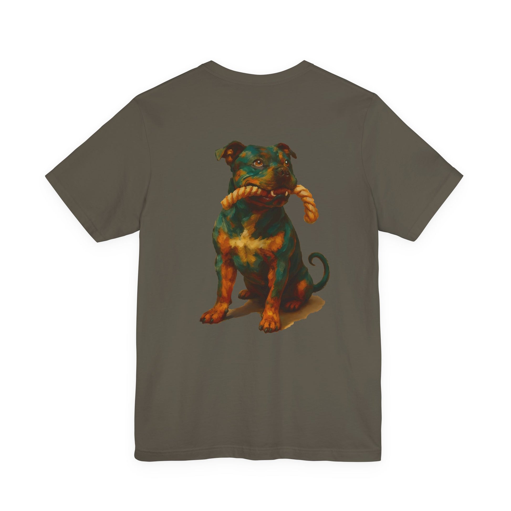 Celebrate proud Staffordshire Bull Terrier dads with this powerbreed-inspired design! Featuring a full-body oil-painted Staffy holding his favorite rope toy, this premium tee combines loyalty, strength, and playful charm. Perfect for Valentine’s Day, Father’s Day, birthdays, or any Staffy-loving dog dad who deserves appreciation. Soft, comfortable, and sized for everyday wear — a tribute to the bond between man and breed.