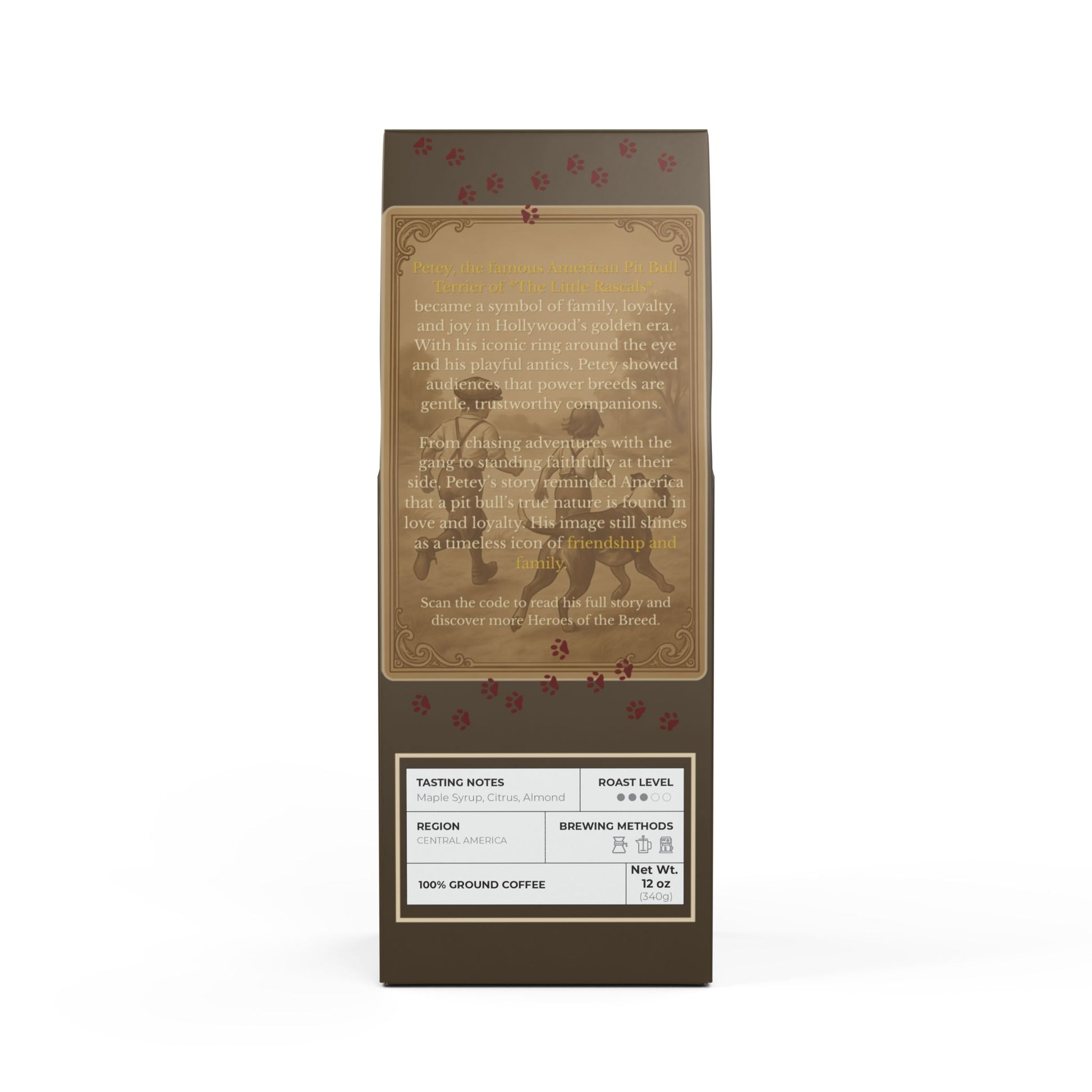 Faithful friend and playful companion, Petey’s Loyal Brew delivers a comforting cup for any occasion. This medium roast blend of Central American beans brings smooth cocoa, maple sweetness, and a gentle citrus brightness — a steady, everyday roast that feels like home.