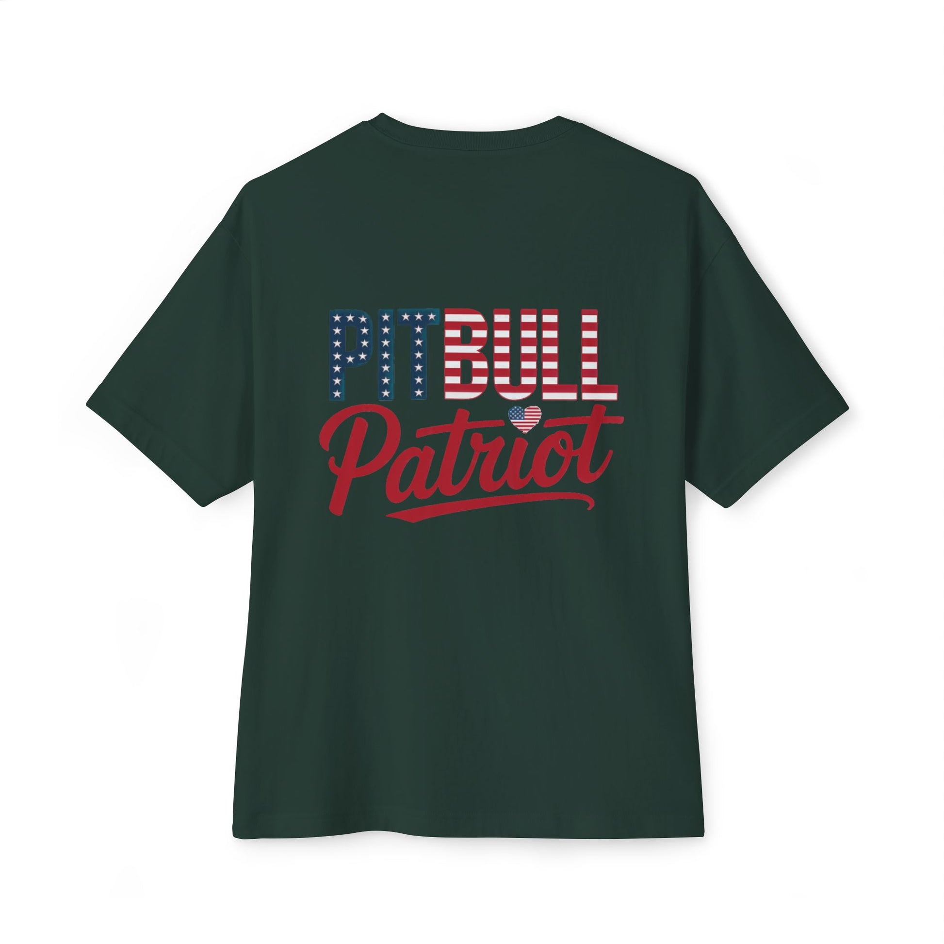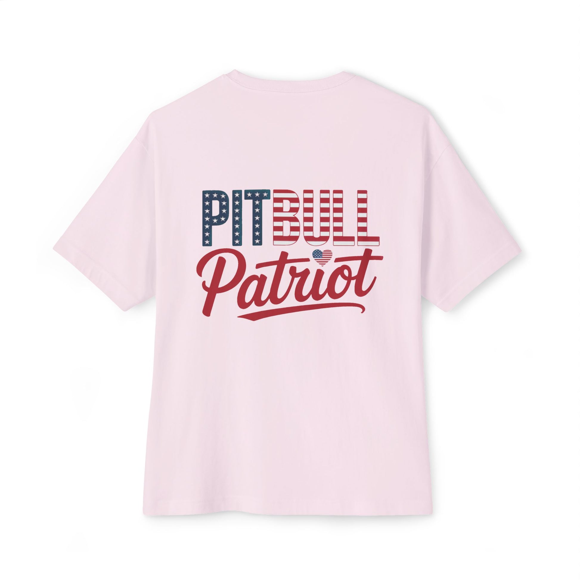 🇺🇸 Back Design: "Pitbull Patriot" typography with stars and stripes, paired with a heart detail for an all-American look.