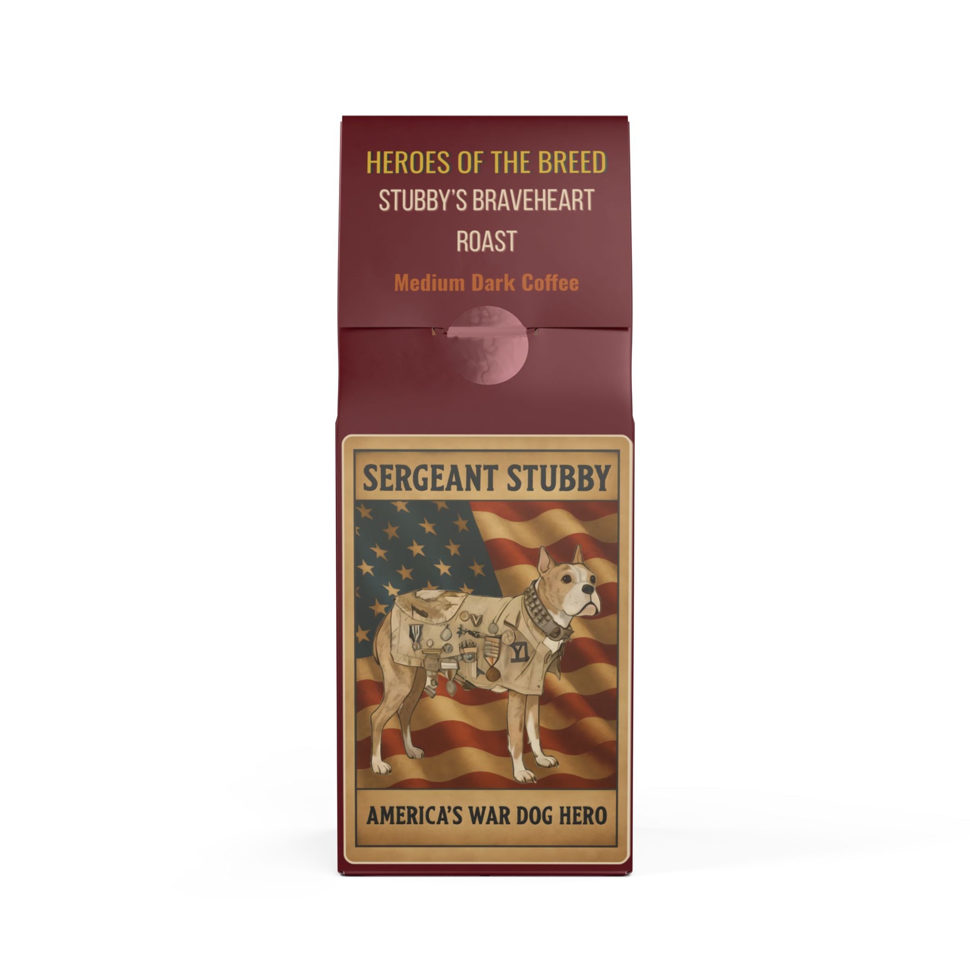 Strong-willed and fearless, Stubby’s Braveheart Roast honors his fighting spirit with bold, robust flavors. Sourced from South America and the Pacific, this medium-dark roast is full-bodied with rich cocoa, toasted nuts, earthy undertones, and a lingering finish — perfect for those who like their coffee bold but smooth.