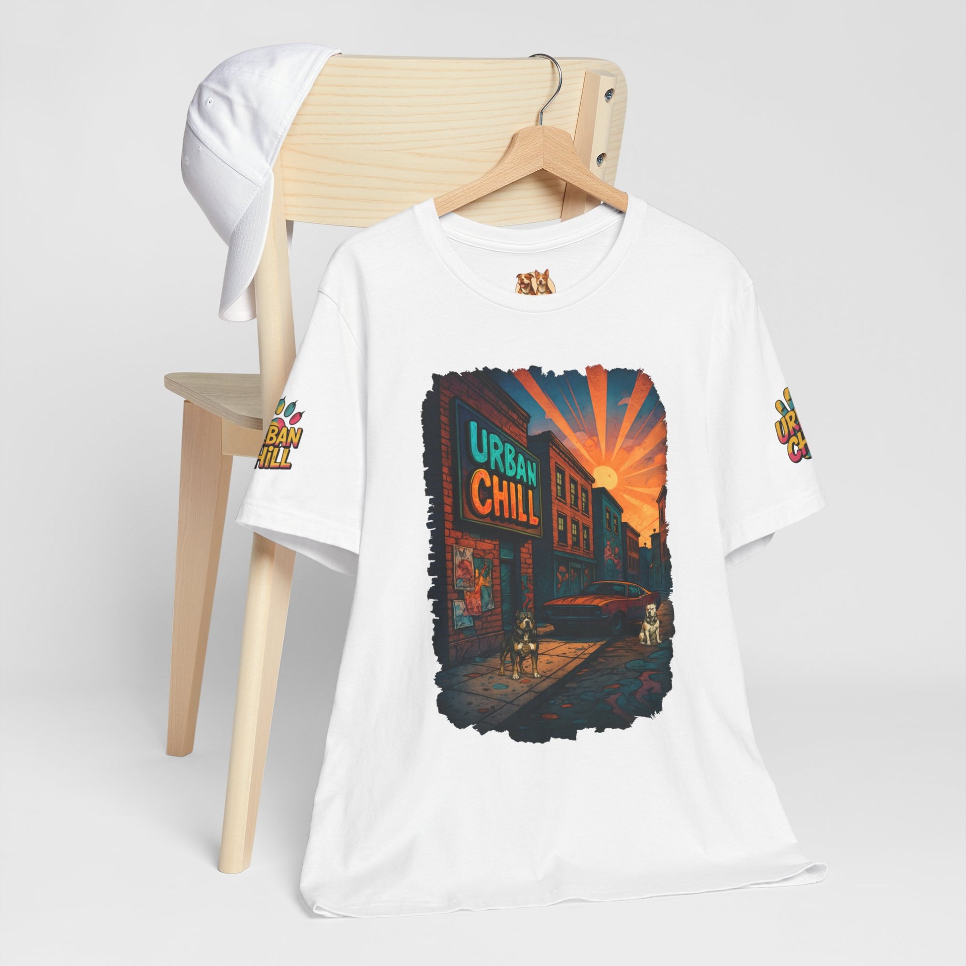 Bold city vibes meet loyal companionship in the “Urban Chill” tee. Featuring a retro muscle car, sunset skyline, and two powerful Pitbulls holding down their block, this shirt blends grit with heart. Perfect for dog lovers who embrace the strength, loyalty, and style of power breeds. Printed on premium Bella + Canvas 3001 for a soft, lightweight fit that keeps you comfortable in every season.
